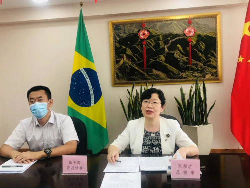 2022年2月15日,驻圣保罗总领馆举办领区中资机构线上新春团拜会,领区主要中资机构80余名代表参加,驻圣保罗总领事陈佩洁在线出席。