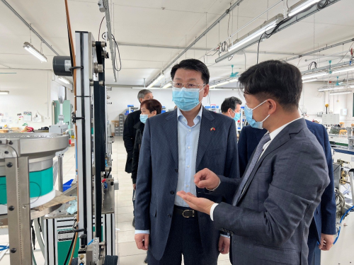 刘侃依次走访了企业的生产车间、仓库和员工生活区,详细了解企业生产经营和疫情防控情况以及当前面临的困难挑战,与企业员工亲切交谈,询问其工作和生活情况,倾听他们的诉求,随后同企业负责人和侨界代表进行座谈交流。