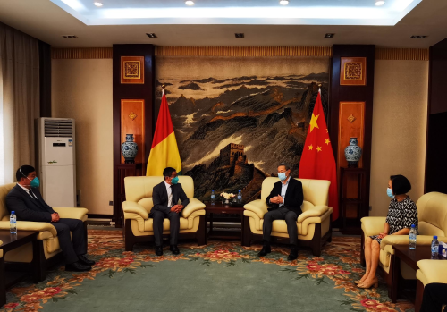 2022年3月17日,驻几内亚大使黄巍偕夫人余慧在使馆举行仪式,欢迎第29批援几医疗队到几工作。