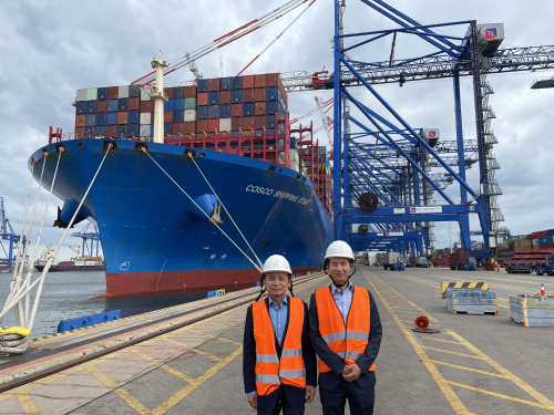 2022年6月10日,驻革但斯克总领事樊晓东考察革但斯克深水集装箱码头(DCT),中远海运集运波兰公司总经理孙平陪同。