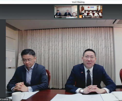 陈得信董事长介绍酒钢集团情况及牙买加阿尔帕特项目当前进展,表示牙买加项目公司将在安全生产和疫情防控工作基础上,有序推进该项目,并在当地履行好社会责任,提升中资企业在牙形象和口碑,为深化两国务实合作增添亮点。