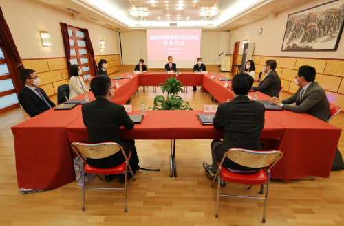 2022年8月31日,驻瑞典大使崔爱民出席“国家优秀自费留学生奖学金”颁奖仪式,并与获奖学生代表座谈交流。