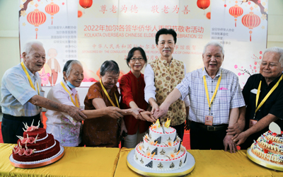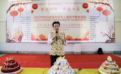 2022年10月9日,加尔各答华侨华人齐聚玄奘寺,隆重举行重阳节敬老活动,128位老人及其亲属、侨社团体代表、志愿者、义工以及当地媒体记者等350余人参加。驻加尔各答总领事查立友和夫人郑惠群应邀出席。