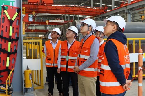 朱大使参观预制管桩生产车间和施工现场,考察压桩作业,并与现场工作人员交流,鼓励中方企业建设好该项目,造福当地民众,为促进中哥双边友好关系发展做出应有贡献。
