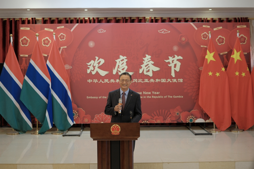 2025年1月22日,驻冈比亚使馆举办2025年新春招待会。驻冈比亚大使刘晋热烈欢迎在冈中资机构、企业、侨胞回“家”共庆新春佳节。