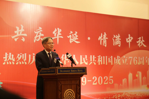2025年9月25日,巴基斯坦侨界举办国庆中秋庆祝活动,驻巴基斯坦大使姜再冬出席并致辞,在巴华侨华人、中资企业、留学生及央媒代表等300余人参加。