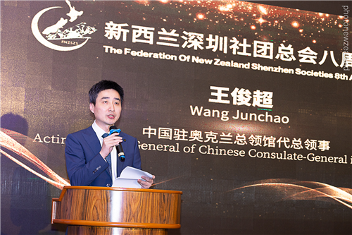 2025年10月10日,驻奥克兰代总领事王俊超出席新西兰深圳社团总会成立八周年庆典。新西兰卫生部长布朗,国会议员张隽浩、陆楠、爱德蒙兹、萨莱萨,奥克兰市副市长辛普森,深圳市海外交流协会会长刘昕,深圳社团总会会长张云及领区侨胞约200人参加活动。