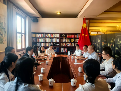 2025年10月10日,驻琅勃拉邦总领事张社平同老挝苏发努冯大学孔子学院院长宋旻英及中方教师一行座谈交流。