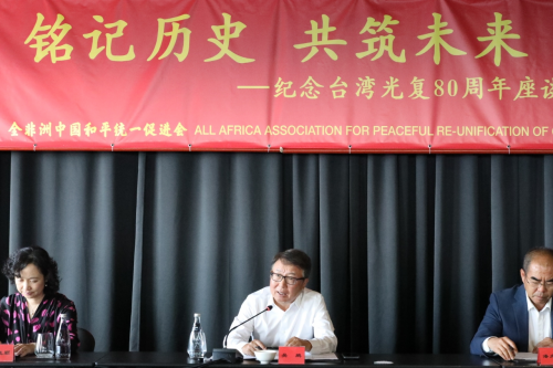 2025年10月17日,驻南非大使吴鹏出席全非洲中国和平统一促进会举办“铭记历史、共筑未来—纪念台湾光复80周年座谈会”并发表讲话。驻约翰内斯堡潘庆江总领事、旅南侨界、中资企业50余名代表参加。