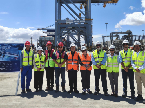2026年1月13日,驻瓜亚基尔总领事高振廷参观瓜亚基尔波索尔哈港,瓜亚基尔港务局负责人阿辛克、港口运营方负责人贡萨尔维斯陪同,并走访中国港湾厄瓜多尔公司承建的码头二期项目施工现场,与公司负责人隋超越进行交流。