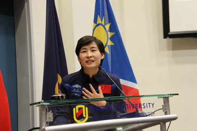 2019年8月22日,正在纳米比亚访问的航天员刘洋、陈冬在纳科技大学与当地大学生举行了一场别开生面的“太空”对话,在热烈的互动气氛中分享了他们在太空中工作、生活的经历感受。驻纳米比亚大使张益明、纳高教部副部长乔泽-奥乔、纳高教部执行长肯特、纳科大工程系主任约翰、纳天文学会会员、当地大学生代表等200余人出席活动。纳通社、纳国家电视台、《新时代报》等多家纳主流媒体和《人民日报》、新华社、中国国际广播电台等中国媒体现场报道。