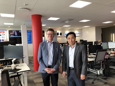 2019年8月27日,驻冰岛大使金智健走访电视二台(Stöð 2)、指针网站(Visir.is)及电波电台(Bylgjan),与总编辑古兹蒙德松就加强双方合作事宜交换意见。