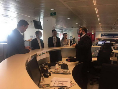 2019年8月27日,驻比利时大使曹忠明参访比利时最大法语报纸《晚报》总部,会见报社总经理雷耶马克和主编贝蒂,双方就报社发展情况、涉华报道等共同关心的话题进行了交流。