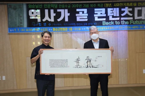 2022年9月7日,驻光州总领事张承刚应邀出席由和顺人文学教育协会主办的“纪念中韩建交30周年‘历史就是内容—青年,遇见司马迁’”讲座活动并致辞,韩国司马迁学会理事长金瑛洙、副会长金光南等在座。