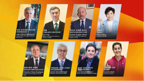 国际奥委会副主席胡安·安东尼奥·萨马兰奇,西班牙驻华使馆公使衔文化参赞布加奥,奥运冠军邓亚萍,西班牙皇马俱乐部主席佩雷斯,西班牙马德里皇家歌剧院院长加西亚-贝伦格尔,西班牙塞万提斯学院院长加西亚,奥运冠军马林等来自两国文化、艺术和体育界的知名人士通过视频祝贺中西建交50周年,盛赞两国各领域交流所取得的丰硕成果,共同展望中西文明互鉴新方向。