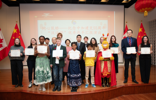 王镝大使对“汉语桥”优秀选手致以热烈祝贺,并表示,很高兴看到越来越多加拿大青少年学习中文和中国文化。不久前,中加两国领导人成功会见,标志着中加关系进入新的发展阶段,希望加拿大年轻朋友能够成为中加友好使者,为增进两国人民友谊、推动中加关系健康、稳定、可持续发展做出贡献。