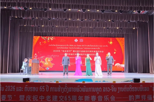2026年2月10日,由驻琅勃拉邦总领事馆和老挝中国文化中心共同主办、中国中央歌剧院演出的2026“欢乐春节”暨庆祝中老建交65周年新春音乐会在琅勃拉邦举行。驻琅勃拉邦总领事张社平、老挝中国文化中心主任罗卫建,老挝琅勃拉邦省委副书记坎腊、南塔省政府副主席蓬乔及老北六省政府代表,领区侨胞、中资机构、华校师生代表等近千人出席。