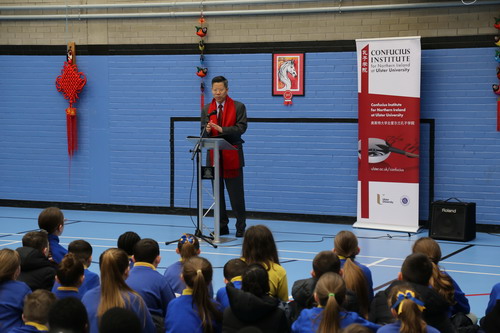 2026年2月19日,英国北爱尔兰卡里克弗格斯学院举办中国新年庆祝系列活动,驻贝尔法斯特总领事李南应邀出席并致辞。该校校长阿曼达·欧文、副校长科林·帕特森和艾玛·贝克特及近200名师生参加。