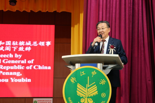 2026年4月9日,驻槟城总领事周游斌出席2026年中国高等教育展槟城站开幕礼,槟城州议员郑来兴、马来西亚华校董事联合总会署理主席李添霖、马来西亚留华同学会会长林国元、韩江三校董事长方炎华及多所华校师生出席,共有56所来自中国大陆及香港、澳门特别行政区的知名高校参加。