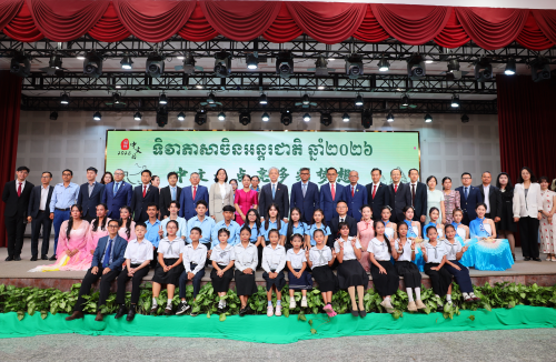 2026年4月20日,2026“国际中文日”活动在柬埔寨王家研究院举行。柬副首相兼教育、青年与体育部大臣韩春那洛、驻柬埔寨大使汪文斌等出席并致辞,柬留华校友会、金边皇家大学师生代表等600多人参加。