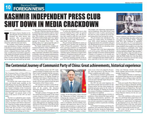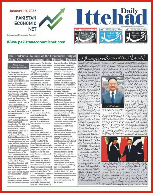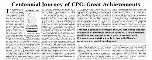 近日,驻巴基斯坦大使农融在巴《国民报》《新闻报》《每日时报》《今日巴基斯坦报》《每日邮报》《每日团结报》等主流英语和乌尔都语媒体上发表署名文章《中国共产党百年征程:成就和经验》。