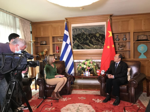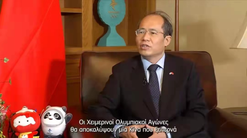 2022年2月4日,北京冬奥会开幕式甫一结束,驻希腊大使肖军正即接受希腊国家电视台(ERT)专访,就2022年北京冬奥会、中希关系发展等回答了记者提问。希腊国家电视台于当天黄金时段和次日早间新闻档播出了专访主要内容。全文如下: