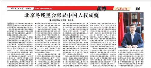 2022年3月20日,驻槟城总领事鲁世巍在马来西亚《光华日报》发表署名文章《北京冬残奥会彰显中国人权成就》,全文如下:
