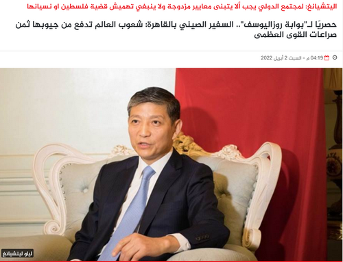 2022年4月2日,埃及《鲁兹尤素福》杂志官方网站发表对驻埃及大使廖力强关于乌克兰局势的专访,全文如下:
