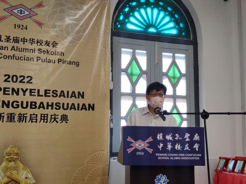 大家下午好!很高兴应邀出席槟城孔圣庙中华校友会会所翻新重新启用典礼,共同见证这一美好时刻。首先,我谨代表中国驻槟城总领馆表示祝贺!