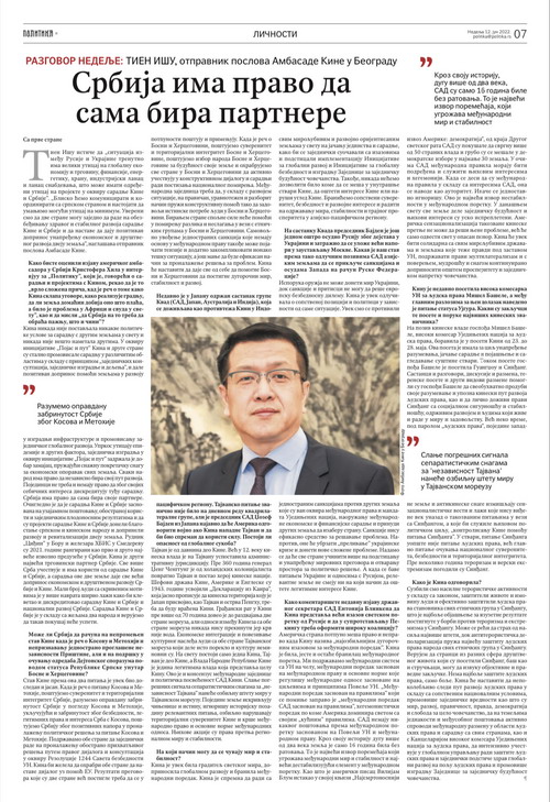 2022年6月12日,驻塞尔维亚使馆临时代办田一澍接受塞《政治报》专访,主要就中塞合作谈及如下: