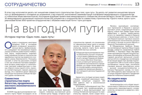 2023年8月3日,驻白俄罗斯大使谢小用在《今日白俄罗斯报》发表署名文章《“一带一路”的港口故事》。文章全文如下: