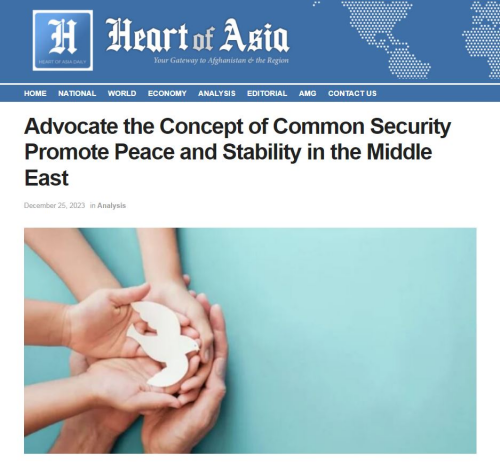 2023年12月25日,驻阿富汗大使赵星在阿主流媒体《亚洲之心》以英语、普什图语、达里语发表署名文章《倡导共同安全理念,推动实现中东和平稳定》 ,中文全文如下: