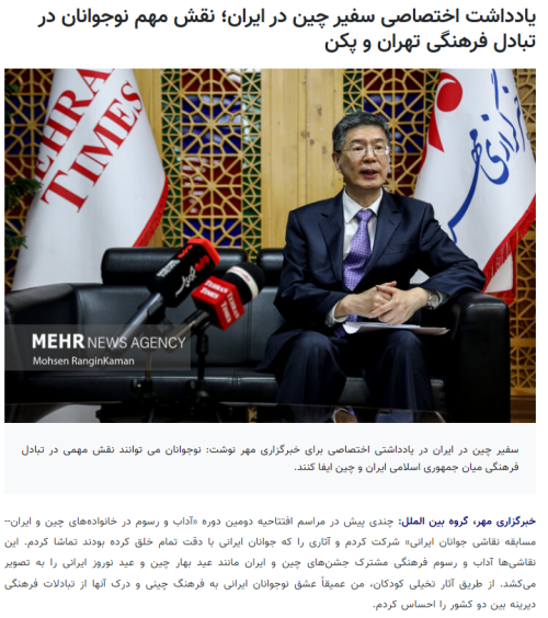 2024年12月23日,迈赫尔通讯社刊发驻伊朗大使丛培武的署名文章《“童心牵手,筑梦未来”——从中伊青少年交流看人文交往的温暖力量》,全文如下: