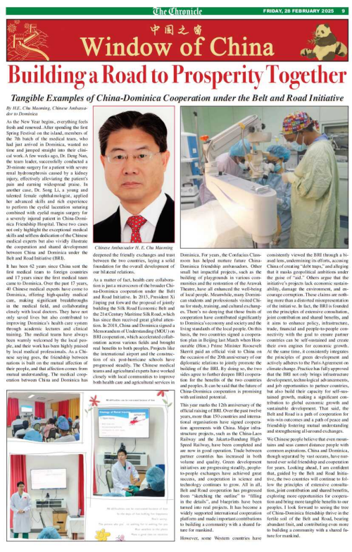 2025年2月28日,驻多米尼克大使储茂明在多主流媒体《纪事报》发表署名文章《共筑繁荣之路:中国与多米尼克“一带一路”合作的生动实践》,向多各界宣介“一带一路”倡议。全文译文如下: