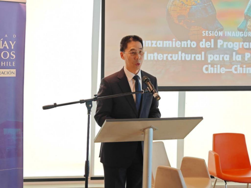 2025年9月10日,由智利大学和在智中资企业协会共同主办的中智企业履行社会责任促进跨文化商业项目启动仪式在圣地亚哥举行,驻智利大使牛清报应邀出席并致辞。致辞全文如下:
