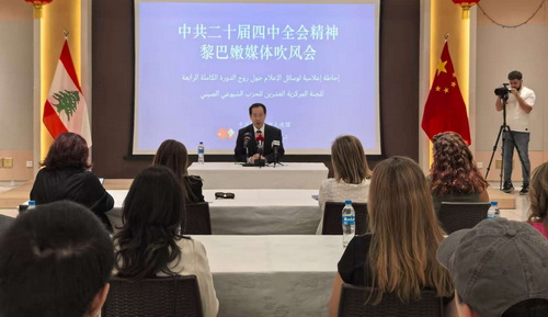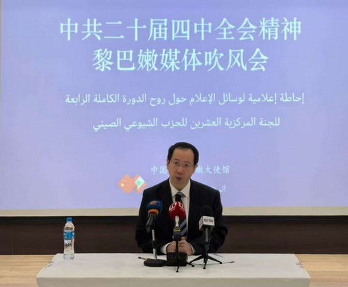 2025年11月6日,驻黎巴嫩使馆举办中共二十届四中全会精神媒体吹风会,黎国家通讯社、国家电视台、迈亚丁电视台、《消息报》、《外交之源》等媒体参加。驻黎巴嫩大使陈传东全面宣介二十届四中全会精神并就中国共产党领导经济工作、中黎共建“一带一路”合作前景等回答了记者提问。陈大使开场白及答问实录如下: