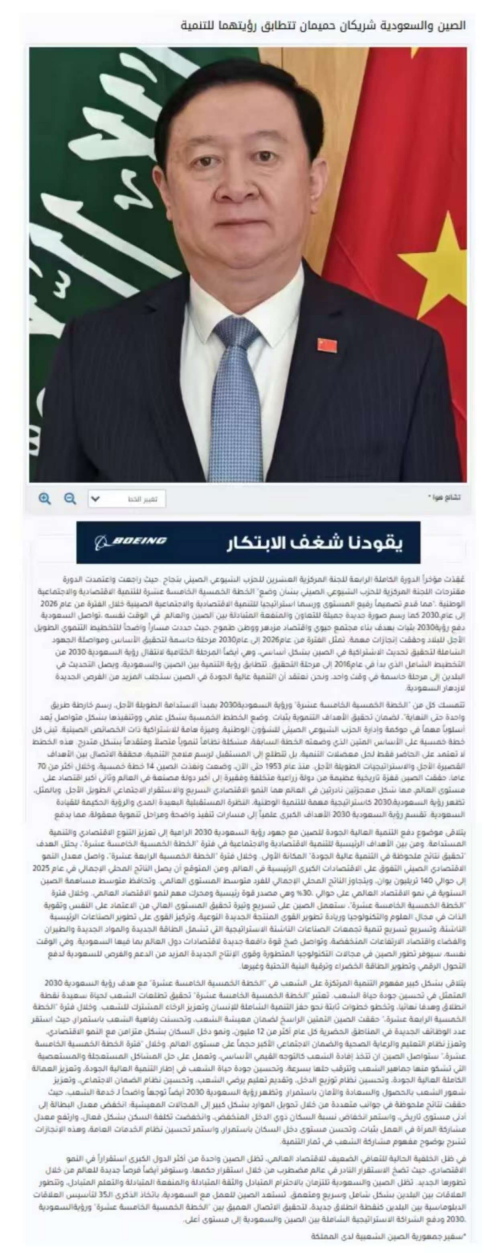 前不久,中国共产党第二十届中央委员会第四次全体会议胜利召开。全会审议通过了《中共中央关于制定国民经济和社会发展第十五个五年规划的建议》,为2026年至2030年中国经济社会发展作出了顶层设计和战略擘画,也为中国与世界合作共赢的美好前景描绘了新的蓝图。与此同时,沙特正在稳步推进以建设活力社会、繁荣经济和雄心国家为目标的“2030愿景”,为国家长远发展规划了清晰路径,并已取得重要成果。2026年至2030年是中国基本实现社会主义现代化承上启下、夯实基础、全面发力的关键时期,也是沙特“2030愿景”从2016年全面布局迈向落地见效的收官阶段。中国和沙特的发展理念契合,现代化建设同步进入关键时期,相信中国高质量发展将为沙特国家繁荣振兴带来更多新机遇。