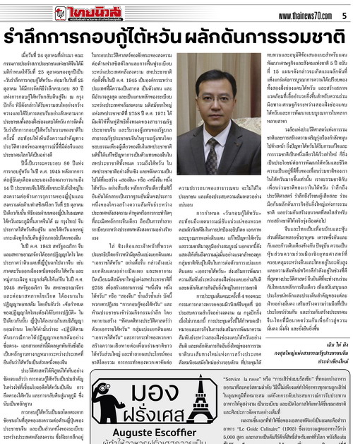 2025年11月24日,驻清迈总领事陈海平在泰北主要报纸《泰国新闻》、《泰北日报》和新闻主管机构官网、泰北角新闻等多家媒体网站发表署名文章《纪念台湾光复 推进国家统一》。文章强调台湾光复是战后国际秩序的重要组成部分,是中国政府恢复对台行使主权的重要铁证,是台湾作为中国一部分的历史事实和法理链条的重要一环。国家统一、民族复兴的历史车轮滚滚向前,不可阻挡。“台独”势力和行径不得人心,注定失败。全文如下: