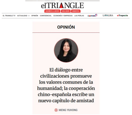 2026年3月17日,驻巴塞罗那总领事孟宇宏在西班牙《三角报》发表署名文章《文明对话弘扬人类共同价值,中西合作谱写友谊新篇章》,全文如下: