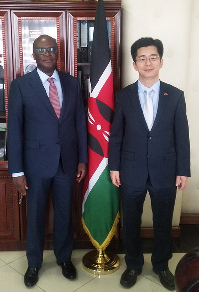 2019年2月13日,驻肯尼亚使馆临时代办李旭航会见肯尼亚交通和基础设施发展部部长马查里亚,就中肯基础设施建设领域合作等交换意见。