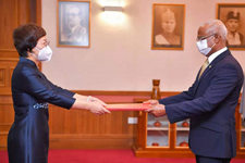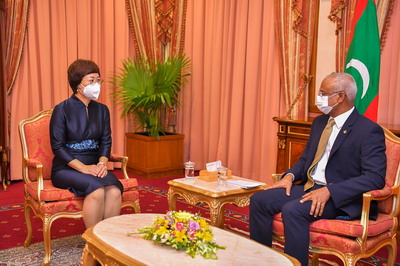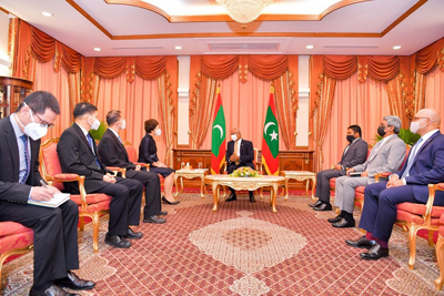 2021年9月6日,新任驻马尔代夫大使王立新在马总统府向萨利赫总统递交国书,双方就中马关系进行了亲切友好交谈。马总统办公室主任扎希尔、外交国务部长卡利尔、总统办公室首席新闻官胡德等参加。