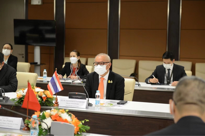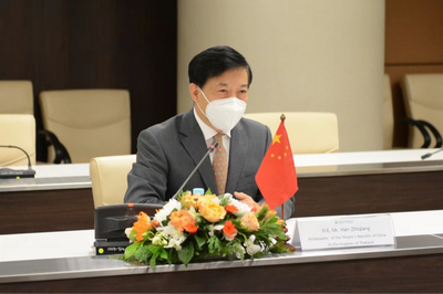 2021年11月19日,驻泰国大使韩志强在泰国能源部拜会副总理兼能源部长苏帕塔纳蓬。
