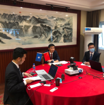 2021年11月29日,驻索马里大使费胜潮与刚刚结束汉语研修班培训的索马里外交部官员举行线上座谈,积极评价中索务实合作成果,介绍中国共产党第十九届中央委员会第六次全体会议精神。使馆青年外交官参加座谈交流。