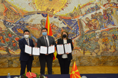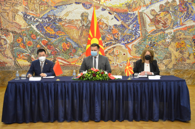 2021年11月26日,驻北马其顿大使张佐与北马总统府办公厅主任博什尼亚科夫斯基、贝罗沃市社会服务中心主任尼科洛娃签署合作协议,支持贝罗沃残障人士照护中心改造项目。总统外交政策顾问斯帕索夫、北马劳动与社会政策部副部长侯赛因等在座。