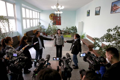 杜大使和扎签署援助乐器交接证书并接受吉国家公共广播电视台等主流媒体联合采访。