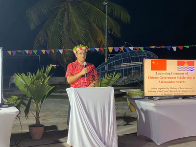 2021年12月1日,驻基里巴斯使馆同基教育部联合举办中国政府奖学金启动仪式,驻基里巴斯大使唐松根与马茂总统夫妇、副议长雷德芬、教育部长蒂博等政要,以及学校、宗教、企业等各界代表和使馆外交官等近百人出席,当地主流媒体全程报道。
