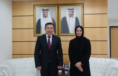 2021年12月2日,驻卡塔尔大使周剑拜会卡塔尔新任教育与高教大臣布赛娜。