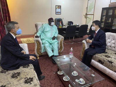 2021年12月7日,驻尼日尔大使蒋烽赴尼蒂拉贝里大区首府蒂拉贝里市拜会新任大区区长迪奥里。