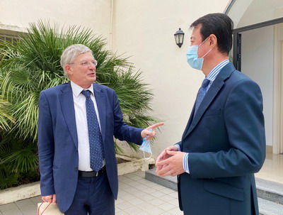 2021年12月9日,驻马耳他大使于敦海会见马耳他前副总理兼外长、前欧盟委员会委员托尼奥·博奇。