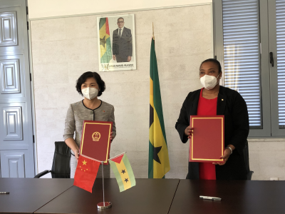 2021年12月9日,驻圣多美和普林西比大使徐迎真,圣普外交、合作和海外侨民部部长滕朱瓦分别代表两国政府签署《中华人民共和国政府与圣多美和普林西比民主共和国政府关于共同推进丝绸之路经济带和21世纪海上丝绸之路建设的谅解备忘录》。圣普驻华大使多明戈斯、圣普外交部国际合作司长卡斯特罗等出席签字仪式。